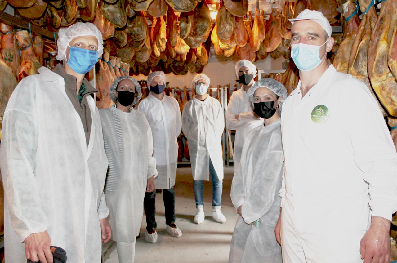 Compartimos con ellos la visita, que comenzó con un recorrido por la empresa Embutidos Sobrón Martínez, ubicada frente a Bodegas Clemente García, donde su anfitrión, Gerardo Sobrón, tercera generación de la familia, mostró los procesos artesanales de elaboración y curación de sus embutidos y jamones.