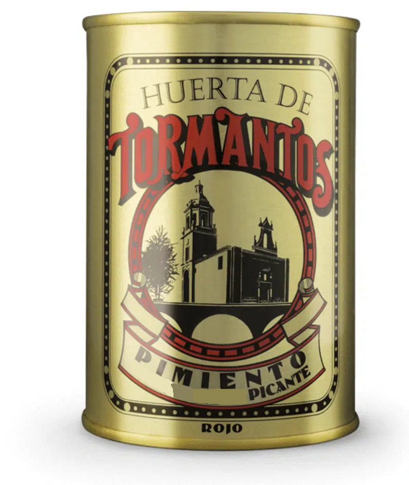 Pimientos rojos picantes en tiras «Huerta Tormantos», producto artesano de La Rioja, asados con leña y pelados a mano.